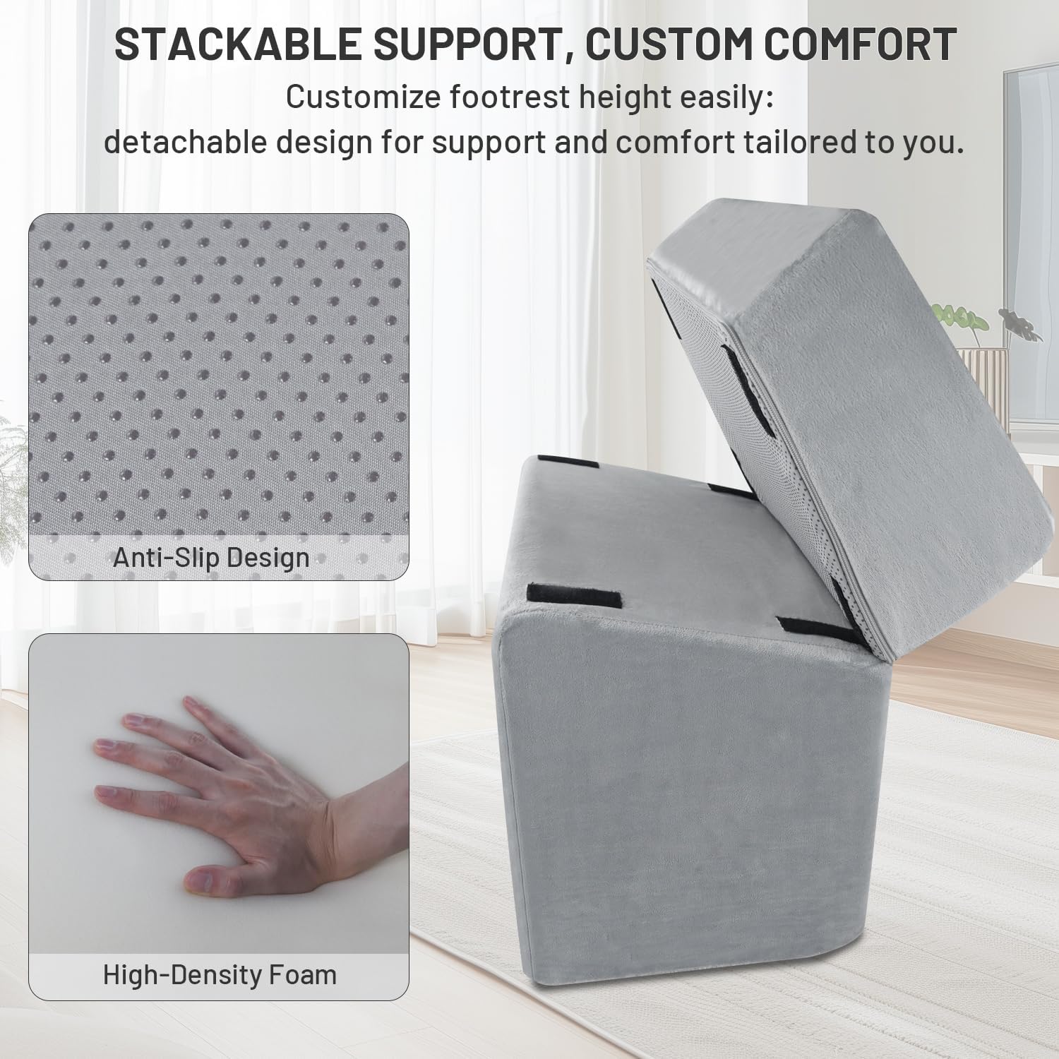 Ergonomic Under Desk Foot Rest & Stool for Work – 3D Adjustable Stackable Footrest w/Detachable Base, High-Density Support & Washable Cover for Office/Gaming/Travel (17×11×17in, Gray)
